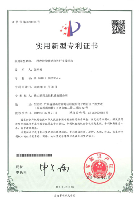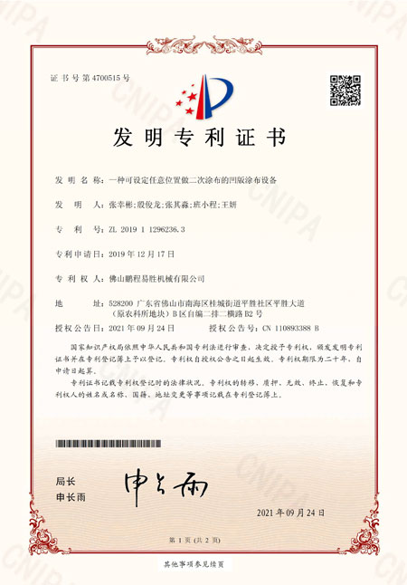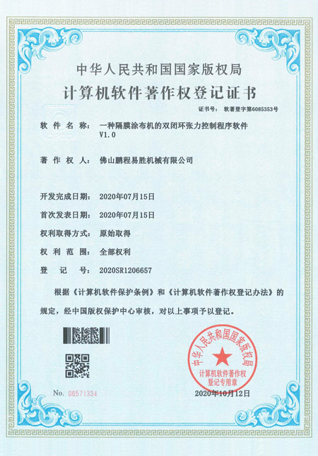 公司自成立以來,始終致力于新產(chǎn)品、新技術(shù)的研發(fā)、推廣。得到授權(quán)國家發(fā)明專利、實(shí)用新型專利、軟件著作權(quán)、注冊商標(biāo)等已超過100余項(xiàng)。公司自主研發(fā)生產(chǎn)的“鋰離子電池生產(chǎn)用涂覆凹版印刷設(shè)備”在2020年度評(píng)選為廣東省名優(yōu)高新技術(shù)產(chǎn)品稱號(hào)。同時(shí)公司先后獲得國家高新技術(shù)企業(yè)、桂城品牌企業(yè)、佛山市“專精特新”企業(yè)、規(guī)模以上企業(yè)、重合同守信用企業(yè)、佛山市領(lǐng)軍企業(yè)、佛山市最具發(fā)展?jié)摿ζ髽I(yè)、街道安全生產(chǎn)企業(yè)、安全生產(chǎn)標(biāo)準(zhǔn)化企業(yè)等榮譽(yù)稱號(hào),2019年被評(píng)為廣東省最具發(fā)展?jié)摿η?qiáng)企業(yè)。